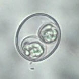 FIGURA 1. Ooquistes de Cystoisospora spp. 400X