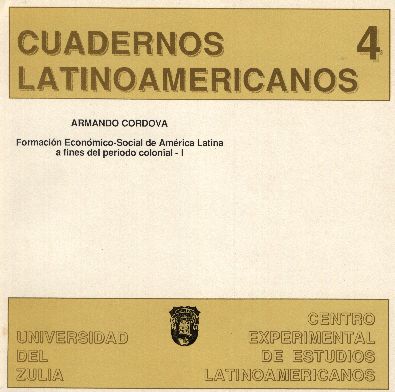 Vol. 2 No. 4 (1989)El cuarto número de la Revista Cuadernos Latinoamericanos del Centro Experimental de Estudios Latinoamericanos (CEELA) se publicó en septiembre de 1989 por la Editorial de la Universidad del Zulia (EDILUZ). Este número presenta un estudio del Profesor Armando Cordóva (Universidad Central de Venezuela) sobre la "Formación Económico-Social de América Latina a fines del período colonial" que comprende tres capítulos: I. Aspectos generales, II. La estructura económica mundial en visperas de la Revolución Industrial y III. Las colonias iberoamericanas en el sistema de relaciones internacionales de fines del siglo XVIII.