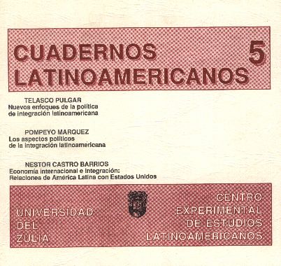 Vol. 3 No. 5 (1991)El quinto número de la Revista Cuadernos Latinoamericanos del Centro Experimental de Estudios Latinoamericanos (CEELA) se publicó en febrero de 1991 por la Editorial de la Universidad del Zulia (EDILUZ). Este número presenta tres conferencias: Nuevos enfoques de la política de integración latinoamericana de Telasco Pulgar (Funcionario de la Secretaría Permanente del Sistema Económico Latinoamericano, SELA); Los aspectos políticos de la integración latinoamericana de Pompeyo Márquez y Economía internacional e integración: relaciones de América Latina de Néstor Castro Barrios (Profesor-investigador de la Universidad del Zulia).