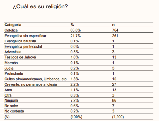 Tabla 1 Respuestas de venezolanos a la pregunta ¿cuál es su religión?