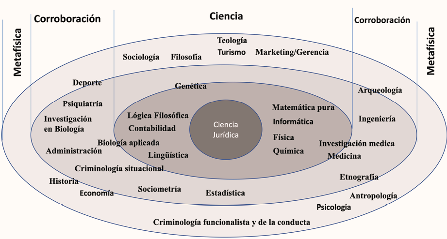 Por consecuencia, su relación con otras disciplinas o ciencias debe ser observada con criterios de demarcación (metafísica/ciencia) y no solo con núcleos problemáticos o temáticos distintos. Caso especial merece la mención de la criminología situacional o empirista, que, como otras ciencias inductivas, es susceptible de corroboración al discruso científico (Castro Aniyar, 2018). A continuación, se sugiere un conjunto de advertencias para demarcar adecuadamente a las ciencias jurídicas, delimitándola de otras ciencias, siempre que se entienda su superioridad científica lógico-deductiva, a la par de ciencias como la matemática, la lingüística o la física:
