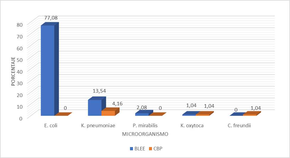 de betalactamasas de espectro extendido (77,08%) y Klebsiella pneumoniae