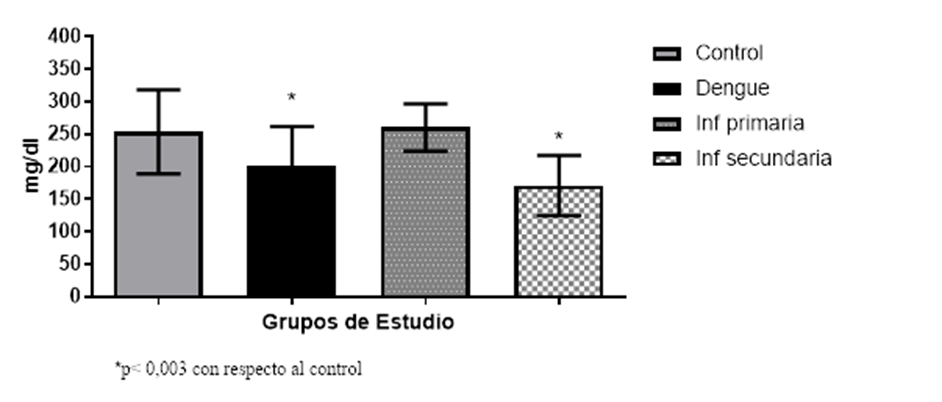 perfil lipídico en pacientes con infección confirmada de Dengue. Se estudiaron