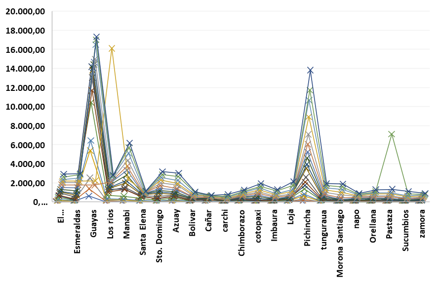 but significantly lower. Guayas and Pichincha currently occupy the first two