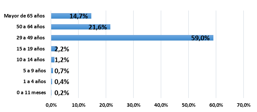 cases, and the age range that predominated was 29 to 49 years (59%). The impact