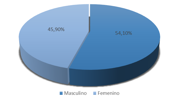 (14.18%). The male gender resulted with a frequency of 54.10% of the confirmed