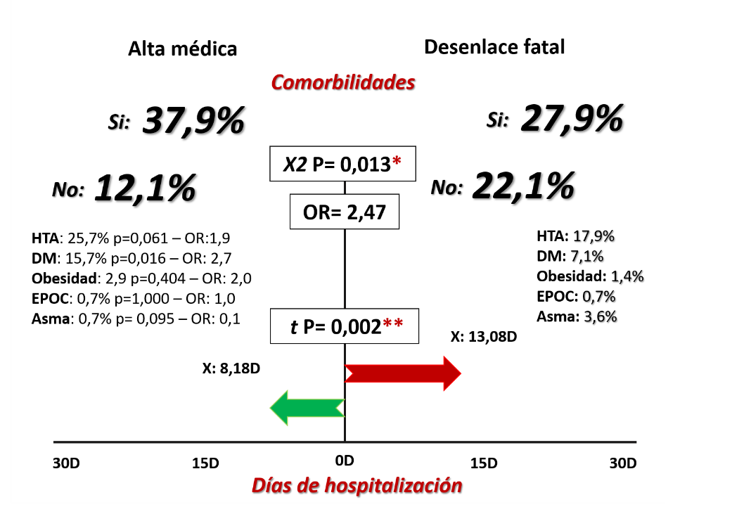 entre las comorbilidades y días de hospitalización. Cuando se analizó la
