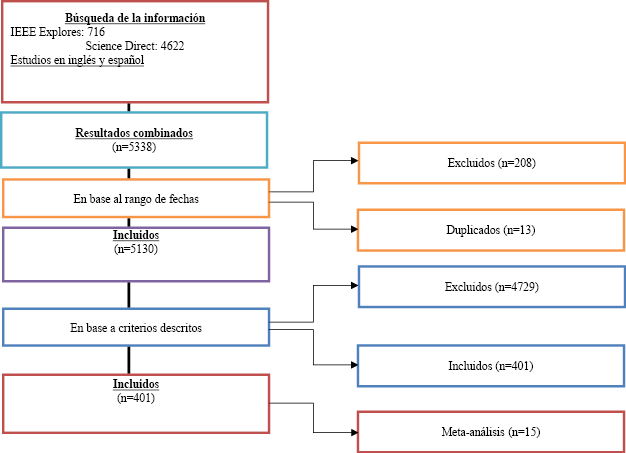 Con la finalidad de implementar el método de investigación a través de un metaanálisis, se consideraron algunos criterios de inclusión y exclusión predefinidos, tal y como se pueden apreciar en el Cuadro 3, que permitieron realizar un filtrado de información con el fin de conseguir bases bibliográficas adecuadas al tema tratado en este estudio.