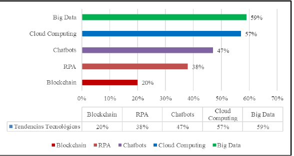 La encuesta desarrollada a 167 empresas en el mes de diciembre del año 2020, por parte de la firma de consultoría Ernst & Young, en conjunto con la revista tecnológica ITahora, muestran la estadística de tendencias de adopción tecnológica en Ecuador, tal y como se puede visualizar en el Gráfico V.