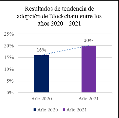 Gráfico VI: Resultados de tendencia de adopción de Blockchain entre los años 2020 – 2021 y margen de crecimiento