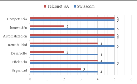 La comparación técnica fue realizada entre dos empresas, diferenciadas por su forma de manejar datos, siendo Swisscom, la organización que emplea Blockchain para el manejo de datos administrativos; y Telconet S.A., que emplea un sistema de gestión de información convencional, tal como se puede apreciar en el Cuadro 4.