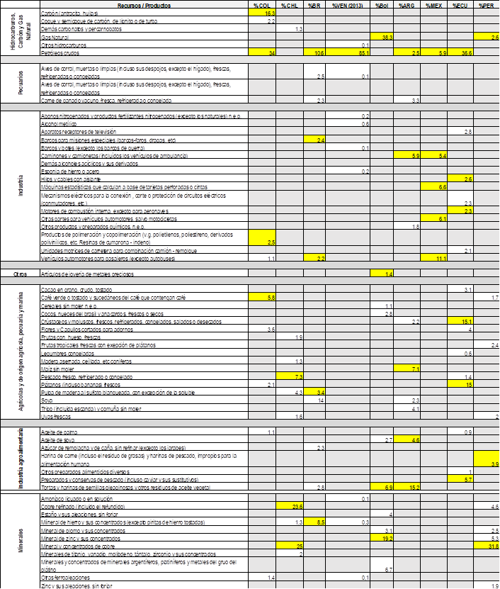 origen marino, pecuario o agrícola, los otros países tienen una alta dependencia