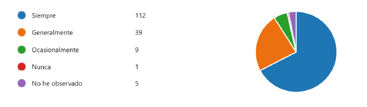 Los resultados del Gráfico XI, mencionan a un 39,8% de los alumnos (66) que consideran que siempre los docentes aclaran las dudas sobre el tema a desarrollar, un 36,7% (61 estudiantes) contestaron que generalmente, y 20% manifestaron que ocasionalmente. Por lo tanto, también se consideran positiva la percepción por parte de los estudiantes.