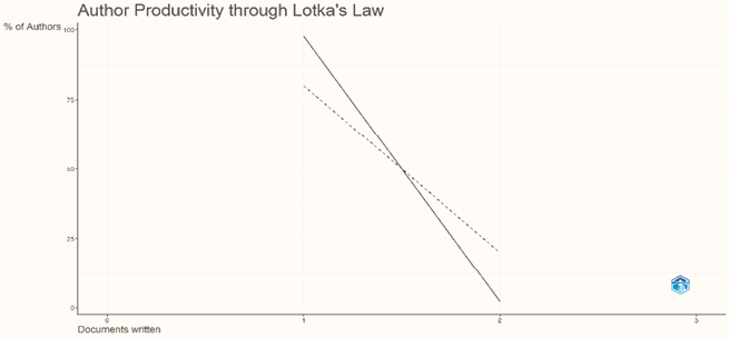 En este caso, los resultados de las leyes de productividad bibliométrica validan los postulados de las leyes de Bradford y de Lotka, puesto que se identifican las teorías y escuelas de pensamiento dominantes. Se evidencia, que un grupo reducido de autores es el que publica la mayoría de los trabajos referidos al turismo rural y su demanda, estos escritores conocidos como “autores nucleares”, son los que publican alta cantidad de sus investigaciones, en contraposición con un número significativo de autores ocasionales con baja productividad.
