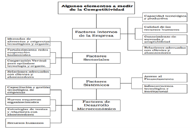 Adicionalmente en la figura 2, se evidencia una serie de factores estructurados sistemáticamente para identificar cada uno de los elementos que definen la medición competitiva de la empresa. Se estima que el desempeño competitivo de una empresa, industria o nación se ve condicionado por la conjugación de diversos factores: internos a la empresa, sectoriales, sistémicos y de desarrollo microeconómico.