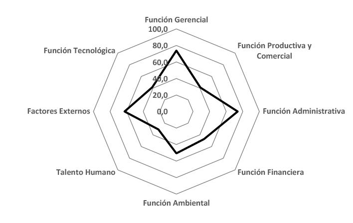 Cabe destacar que en la función de talento humano todas las empresas de la muestra estudiada, presentan deficiencias, sobre todo, en el manejo del clima laboral, promoción del personal, capacitación a los trabajadores, programas de salud ocupacional y seguridad industrial; otra debilidad importante de estas firmas es la función tecnológica, en cuanto al uso de programas de diseño, producción y/o manufactura, automatización de procesos, y el acceso a tecnologías de última generación; estas dificultades impactan en la menor calidad de los productos y en la generación de ventajas competitivas.