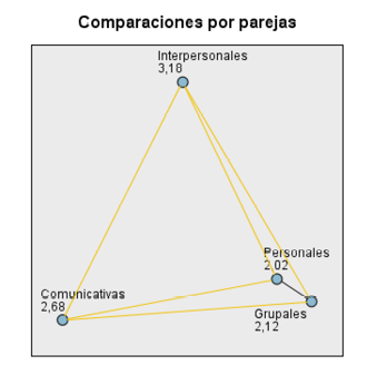Como se observa en la tabla 3, la prueba de comparaciones por parejas (Wilcoxon) muestra la existencia de diferencias significativas en las habilidades en los tiempos de emergencia sanitaria que se vive (p_valor<0.05) a excepción de las habilidades personales y grupales en el que no existen diferencias significativas; es decir, su prevalencia son equivalentes.
