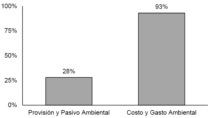 En cuanto a las cuentas de contabilidad aplicadas por las empresas sustentables en México para registrar los costos ambientales del agua, más del 90 % utiliza la cuenta de costo y gasto ambiental. El 28 % utiliza la cuenta de provisión y pasivo ambiental (gráfico 2).