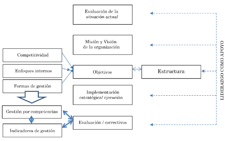 El proceso de planificación estratégica ha sido estudiado desde distintas perspectivas, incluyendo incluso procesos adicionales y mostrando que es relevante seguir ampliando su implementación en función de su mejora continua y adaptación a las nuevas realidades, es el caso de Fonseca, Monterrosa y López (2020) precisan la gestión de competencias dentro del proceso, desarrollando la siguiente propuesta (diagrama 1):
