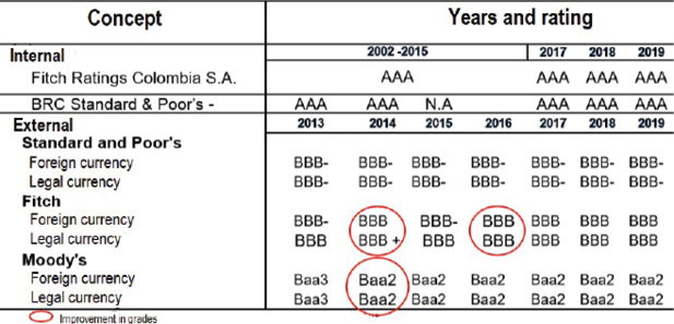 Gran parte de la confianza del inversionista se debe a la evaluación favorable que tienen las centrales de riesgo de inversión para Colombia y en especial la evaluación para la ciudad de Bogotá. Desde el año 2012 esta ciudad presenta una calificación bastante favorable otorgada por empresas evaluadoras tanto a nivel nacional como a nivel internacional, tal y como se muestra en la Tabla 5.