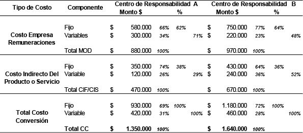 Costo fijos y variables por centro de responsabilidad
