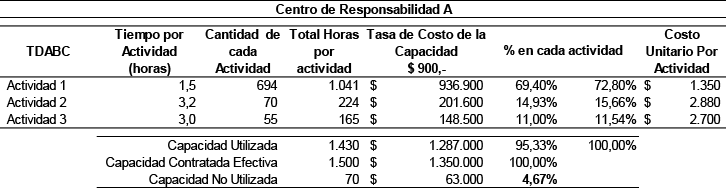 Costo de la capacidad para Centro de Responsabilidad A: