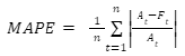 El error porcentual absoluto medio (MAPE) es la medida más común utilizada para pronosticar el error y funciona mejor si no hay extremos en los datos (ni ceros).