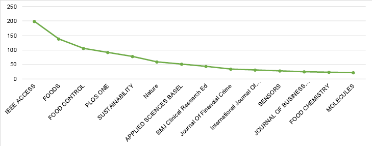 La investigación científica se difunde a la comunidad a través de revistas indexadas, en efecto, según Perry & Kraemer (1986), Granda et al, (2013), Miguel & Dimitri (2013), Hernández-González et al, (2016) y Angulo-Cuentas et al, (2018), la calidad de la producción científica se mide en las revistas indexadas en bases de datos bibliográficas (Cobo et al, 2011). Las revistas son consideradas como un parámetro pertinente por Belter (2015), González, López & Vidal (2016), Sáez et al, (2018), Valdespino et al, (2019) y Behrend & Eulerich (2019) y como son por tanto un excelente indicador para evaluar la calidad de la producción de líneas de investigación científica.