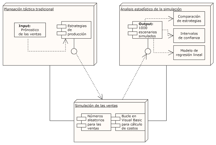 En la gestión de la producción, un modelo de simulación permitiría evaluar distintas variables y mejorar la toma de decisiones para reducir costos operativos y financieros (Cerda et al, 2021; Salazar y Alzate, 2019; Blanco, León y Acosta, 2020). En ese contexto, por ejemplo, la planeación de la producción podría dificultarse debido a la variabilidad que tiene la demanda en función al tiempo, y si bien existen técnicas cuantitativas para el pronóstico de las ventas, estas no aseguran la predicción exacta de su comportamiento. Entonces, un plan de producción podría tener cambios significativos no contemplados que afectarían severamente la toma de decisiones. Una simulación de distintas posibilidades brindaría a pequeñas empresas la capacidad de determinar planes de contingencia o un mayor nivel de confianza respecto al plan diseñado. A pesar de los beneficios asociados a la simulación u otros métodos probabilísticos y matemáticos, aún no se ha profundizado su aplicación en la planificación táctica de la producción. Al respecto, una investigación realizada por Silva, Diaz y Galindo (2017) demuestra que muchos de los estudios respecto a la planeación de la producción (82%) solo usan modelos determinísticos y muy pocos (18%) aplican modelos estocásticos (programación lineal o algoritmos).