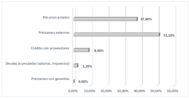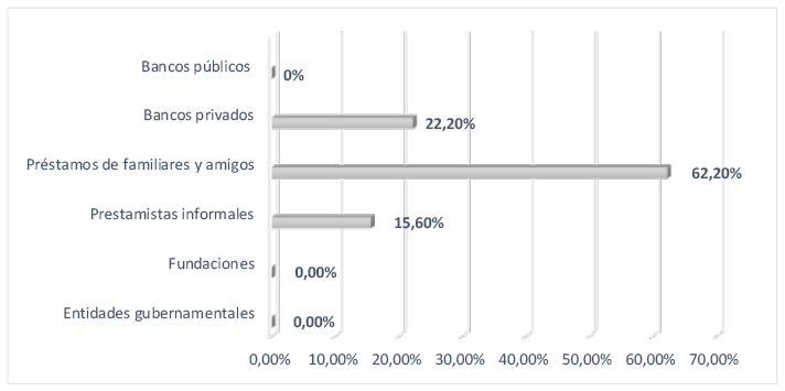 Cabe señalar, que a pesar de que un grupo de empresas se beneficia de la banca privada (22,20%), sería oportuno que más de la mitad accediera a estos programas de financiamiento, pues les permitiría incrementar su productividad e ingresos, haciendo crecer al sector. Pero la realidad demuestra que estas entidades exigen muchos requisitos, siendo necesario a juicio de Bojorquez et al, (2014), así como de Logreira et al, (2018) que diseñen jornadas de asesoramiento en torno a las fuentes de financiación disponibles para su uso, rompiendo la búsqueda de préstamos informales, que poseen altas tasas de interés y poco tiempo para cancelar la deuda.