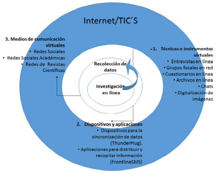 Las TIC´s definitivamente no solo han influido en la forma de hacer investigación académica, sino que han sido el soporte frente a la realidad impuesta por el entorno. De allí que, se puede afirmar que las nuevas formas de recolección de datos (entrevistas en línea; grupos focales en red; cuestionarios y archivos en línea; chats; digitalización de imágenes; dispositivos y aplicaciones; redes sociales, académicos y científicas, entre las destacadas) están marcadas principalmente por los medios de comunicación, de socialización, entre otros. De modo que, aunque ya se tenía conocimiento de herramientas virtuales para la recolección de información, los medios a través de los cuales se aplican han logrado que sean adaptados estos instrumentos a sus posibilidades.