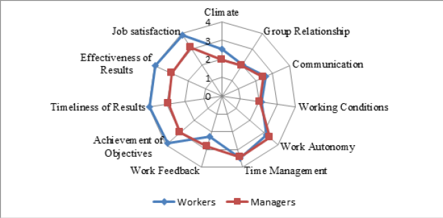The result of the calculated statistic is shown in Table 6. As shown in Table 6, there is a statistically significant association between the predominant need and the level of satisfaction perceived by workers and managers, so it can be concluded that these variables are not independent.