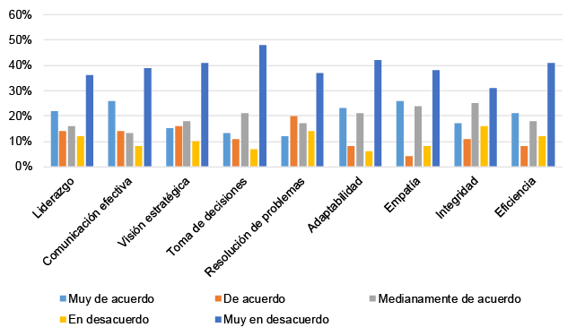Estos datos reflejan que en los puestos directivos de estas pymes no se encuentran liderazgos calificados y competentes para estas responsabilidades, enfrentándose a limitantes en cuanto a la complejidad de los cambios sociales y las demandas cambiantes del mercado. En este sentido, las debilidades en las competencias mencionadas conducen a una acción gerencial incapaz de cumplir las tareas y metas requeridas para afrontar el desarrollo organizacional a partir de las innovaciones tecnológicas contemporáneas y conducir a sus colaboradores al éxito empresarial.
