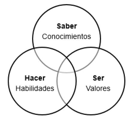 Las competencias profesionales deben poner en manifiesto una triple dimensión de la persona vinculada con el “saber” (es decir, los conocimientos que el profesional debe tener), con el “hacer” (referida a las habilidades y destrezas que necesita para el ejercicio de la profesión) y con el “ser” (vinculada con los valores éticos que deberían sustentar el ejercicio profesional) (Dacunto & Casinelli, 2009; citado por Maida & Pérez, 2011: 68). Las dimensiones de la competencia se pueden apreciar en el diagrama 2.