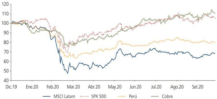 El mercado de renta variable de capitales en el Perú para inicios del año 2020, meses previos a lo acontecido por la pandemia, se presentó un mercado emergente de la economía del mercado de capitales peruanos, con cierta tendencia a la baja con un paralelo a lo que se vivía en la región latinoamericana; en tanto esta correlación directa se debió al desplome del precio de los commoditie de los metales, en el caso del Perú y parte de la región latinoamericana, el del cobre como principal metal de exportación, que influye en gran medida en la cotización de la moneda nacional correspondiente, durante un periodo evaluado; entonces, a causa de la caída del precio del cobre se observó en los meses de enero y febrero una caída correlacional al índice Standard & Poor’s 500 del Perú y Latinoamérica, en ese primer periodo anual (Gurrola-Ríos, Rodríguez-Benavides, & López-Herrera, 2021).