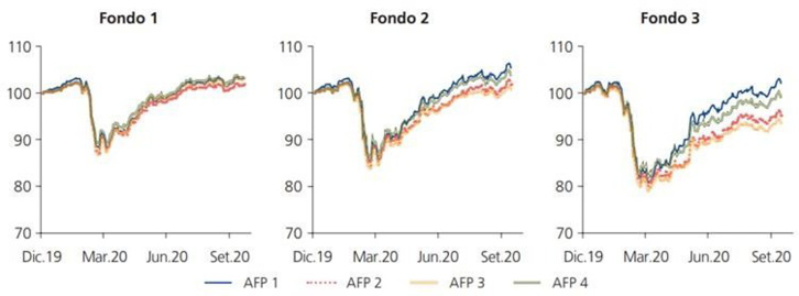 Para luego del mes de producido, los acontecimientos de la pandemia originado por SARS-CoV-2 en el que el estado peruano toma políticas estrictas, las personas se refugian en sus depósitos de AFP para poder sustentar los gastos durante el tiempo de cuarentena, según se muestra en el Gráfico 3 de rentabilidad acumulada de los fondos de las AFP.