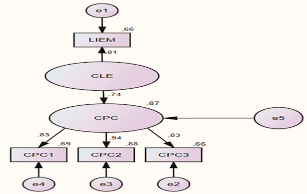 Además, como se aprecia en misma tabla, todas las estimaciones estandarizadas de los parámetros mostraron valores en sus coeficientes aceptables y estadísticamente significativos a p <0.01, por su parte, la varianza explicada sobre el compromiso con el proceso creativo se considera importante. Estos hallazgos demuestran la aceptación de la hipótesis general de la investigación en la evaluación del modelo estructural. Los resultados respaldan investigadores que han sugerido que el estilo de liderazgo fomenta la creatividad (Mainemelis et al, 2015; Mumford et al, 2002) y son consistentes con los estudios anteriores (Cai et al, 2019; Mehmood et al, 2020).
