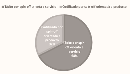 a) naturaleza de la transferencia de conocimiento, tácito por spin-off orientada a servicio o codificado por spin-off orientada a producto