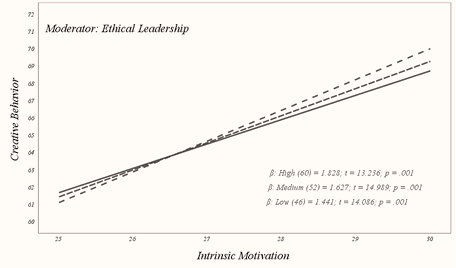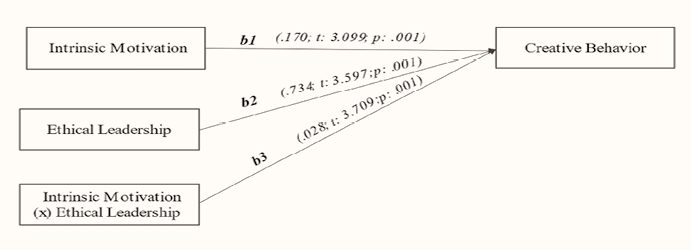 Por último, (hipótesis 3) el liderazgo ético modera la relación entre motivación intrínseca y comportamiento creativo. Lo que cubre un importante vacío de conocimiento, pues, no se han encontrado estudios de contraste.