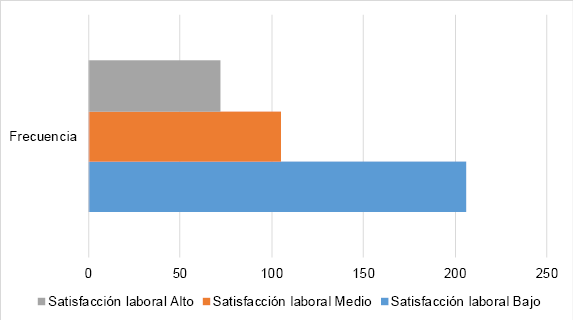 La Tabla 2 y el gráfico 1 reflejan claramente la evaluación del nivel de satisfacción laboral en la muestra de 383 teletrabajadores del sector privado formal de Lima Metropolitana. Se observa que la mayoría, un considerable 53.8%, informa un nivel bajo. Un segundo grupo, representando el 27.4%, se encuentra en un nivel medio.