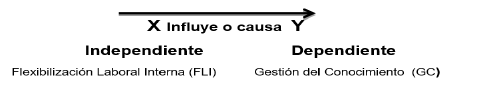 De los señalamientos teóricos anteriores, nació la inquietud de esta investigación de profundizar, demostrar y determinar cuantitativamente la posible relación entre la flexibilización laboral interna y la gestión del conocimiento, tomando como escenario las empresas metalmecánicas del municipio Lagunillas, para tal fin se planteó la siguiente hipótesis causal: