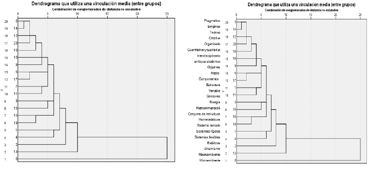 Luego de definir los principales conceptos de la teoría de sistemas, se procede a separar en variables de estudio a través de un dendograma de variables (diagrama 3), mediante tres grupos de conglomerados por conceptos de acuerdo con la siguiente estructura: