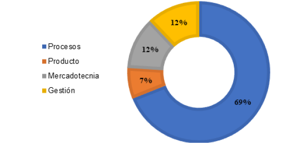La Comisión Económica para América Latina y el Caribe (CEPAL, 2016) señala que, las empresas tienden a actuar reactivamente a los cambios en el mercado, sin considerar planes para su sostenimiento en el largo plazo; y esto fue lo que sucedió con las pymes analizadas. En lo que respecta a las estrategias, por tipo de innovación, que tuvieron que adaptar, se encuentran (Gráfico 2):