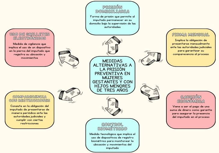 La implementación de medidas alternativas a la prisión preventiva, como la prisión domiciliaria y el uso de grilletes electrónicos, para mujeres gestantes y con hijos menores en Perú, es esencial para garantizar un trato justo y humano, donde estas opciones, alineadas con los principios humanitarios y legales, no solo mitigan impactos adversos en la salud y bienestar de estas mujeres y sus hijos, sino que también refuerzan la justicia y la eficacia del sistema penal.
