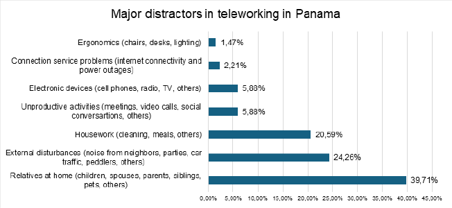Despite the circumstances surrounding its implementation, employees managed to maintain their productivity levels. The efficient management of leadership and the provision of necessary resources by the companies allowed employees to achieve the objectives set with good results. Employees under the modality of telework in Panama focus on the results and fulfillment of objectives and prefer to perform tasks with freedom of organization and without constant supervision; in fact, they consider that frequent virtual meetings interrupt the working day, and the unlimited flow of messages divides their attention, becoming distracters that decrease the ability to concentrate. Teleworking has been a phenomenon since 2020 of the recent legal definition, regulation, and rules in Panama; therefore, employers still require more training regarding the duties and rights of employees under this mode of work.