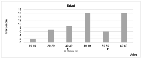 Edad en la muestra de personas que se dedican a la pesca artesanal en Punta Flor, Arriaga, Chiapas