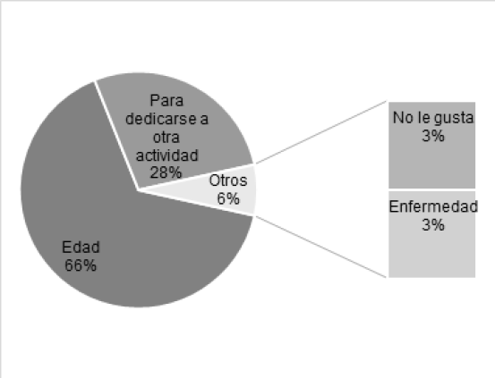 Este contexto de actividad tradicional y envejecimiento de la fuerza activa conduce al cuestionamiento de la reproducción social de la actividad como tal. Esto no es otra cosa que la permanencia de la actividad de pesca artesanal como actividad productiva fundamental. En este sentido, dos de cada tres personas que se dedican a esta actividad han considerado abandonarla (Gráfico 6). Las causas fundamentales para esta tendencia son la edad y el atractivo de otras actividades productivas, aparentemente más lucrativas (Gráfico 7). Sin embargo, la necesidad urgente del abastecimiento familiar, más el deficiente acceso a otras alternativas por falta de recursos y educación, hacen que algunos se enfoquen en mantener la actividad (Gráfico 8).