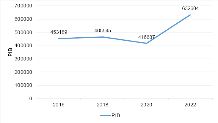 Nota: Los datos en miles de millones de pesos que se tomaron para realizar la gráfica fueron a través de los datos del sitio web www.es. statista.com