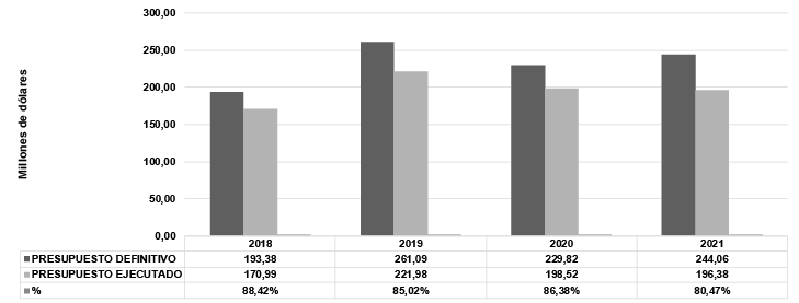 El presupuesto del departamento del Magdalena es aprobado mediante una ordenanza de la asamblea departamental y publicado mediante decreto emitido por el gobernador, el cual expresa la suma total de ingresos, gastos o adiciones y, de forma detallada, la identificación presupuestal, descripción y cuantía. La tabla 1 muestra la relación de los presupuestos aprobados mediante ordenanza, para las vigencias fiscales comprendidas entre los años 2018 al 2021, expresado en millones de dólares.