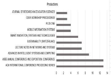 The analysis by sources identifies a total of 161 of them that investigate the topic, with an average of 1.50 documents per source. The ACM International Conference Proceeding Series and ASEE Annual Conference and Exposition, Conference Proceedings stand out as the resources with the highest production, each having 13 publications. Advances in Intelligent Systems and Computing presents nine publications, while the rest have fewer than seven publications (graphic 1). It can be suggested that in recent years, these research efforts have not been concentrated in specific sources but are dispersed among different scientific producers.